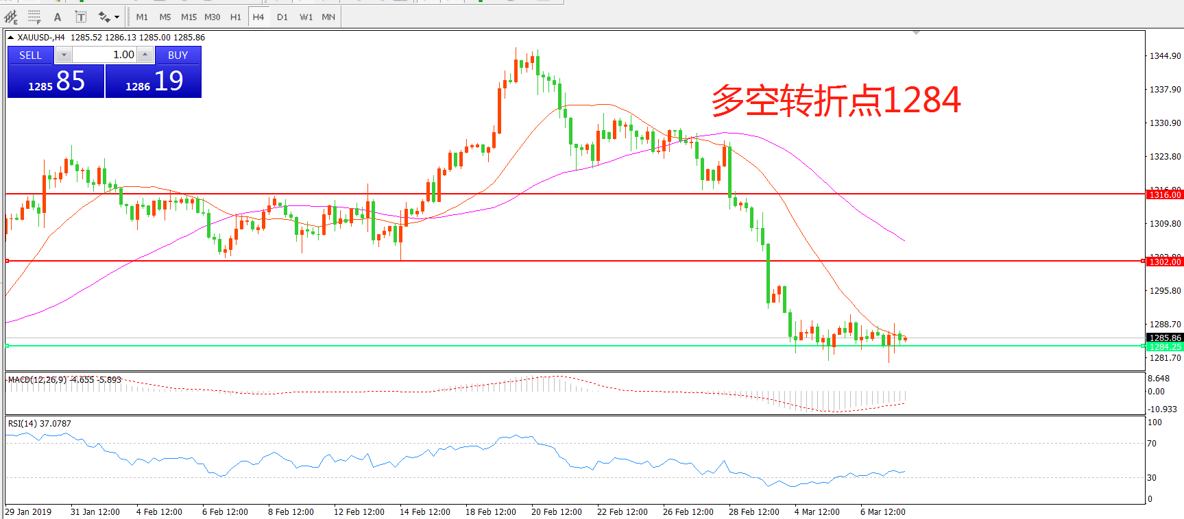 多空转折点:1284.00