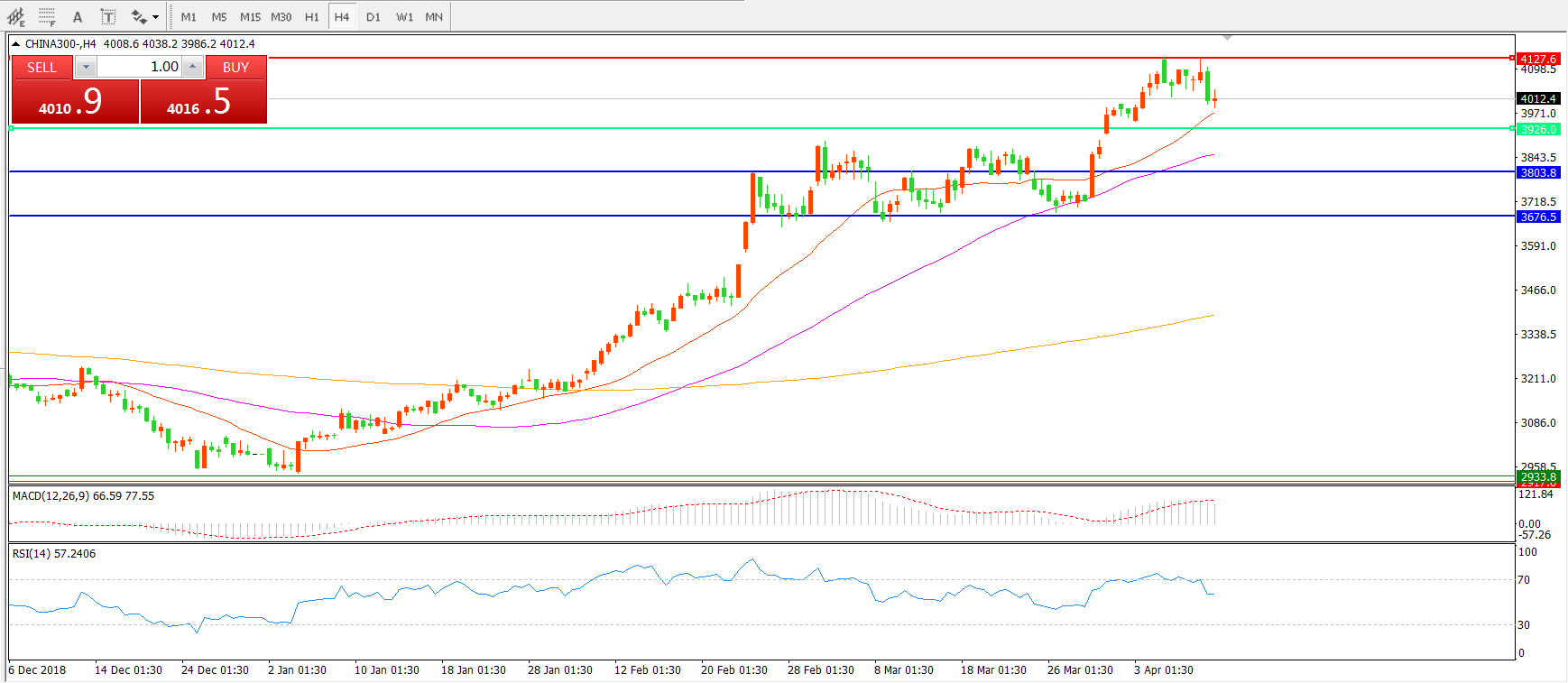 中华指数CHINA3004小时图
