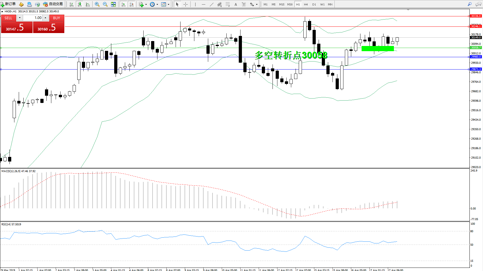 港股主要受外围美股影响早盘低开,午后随A股大涨牵引企稳回升,资金面充裕以及北水活跃支撑港股高位向好,其中内银表现强劲。现中美两市分别走强给高位的港股带来正面支持,香港恒生指数围绕平盘线窄幅震荡,截至收盘跌0.02%,报30124.68点。中国第一季度GDP、社会消费品零售总额和3月规模以上工业增加值均超过预期。