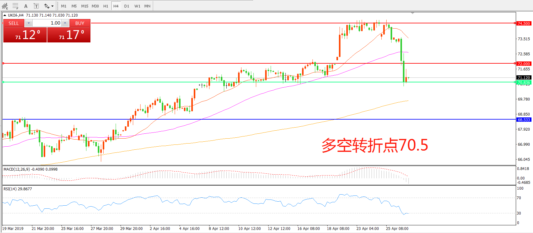 多空转折点:70.50