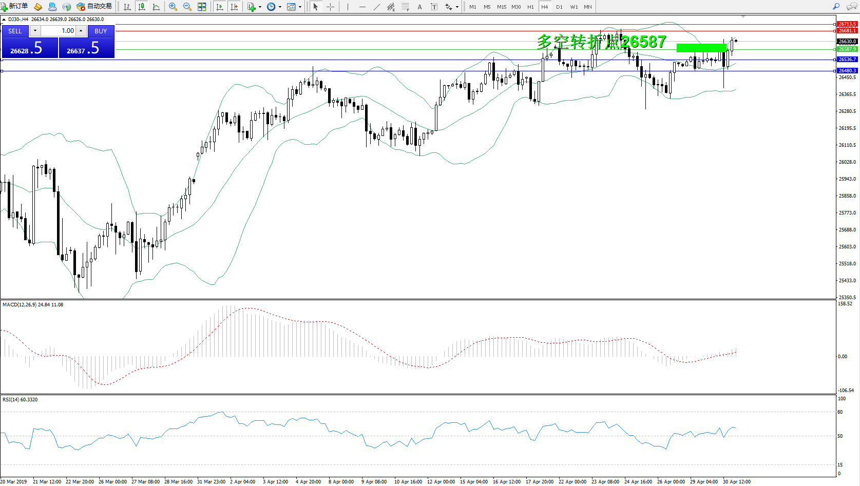 交易策略:26587上方看涨,目标26681、26713
