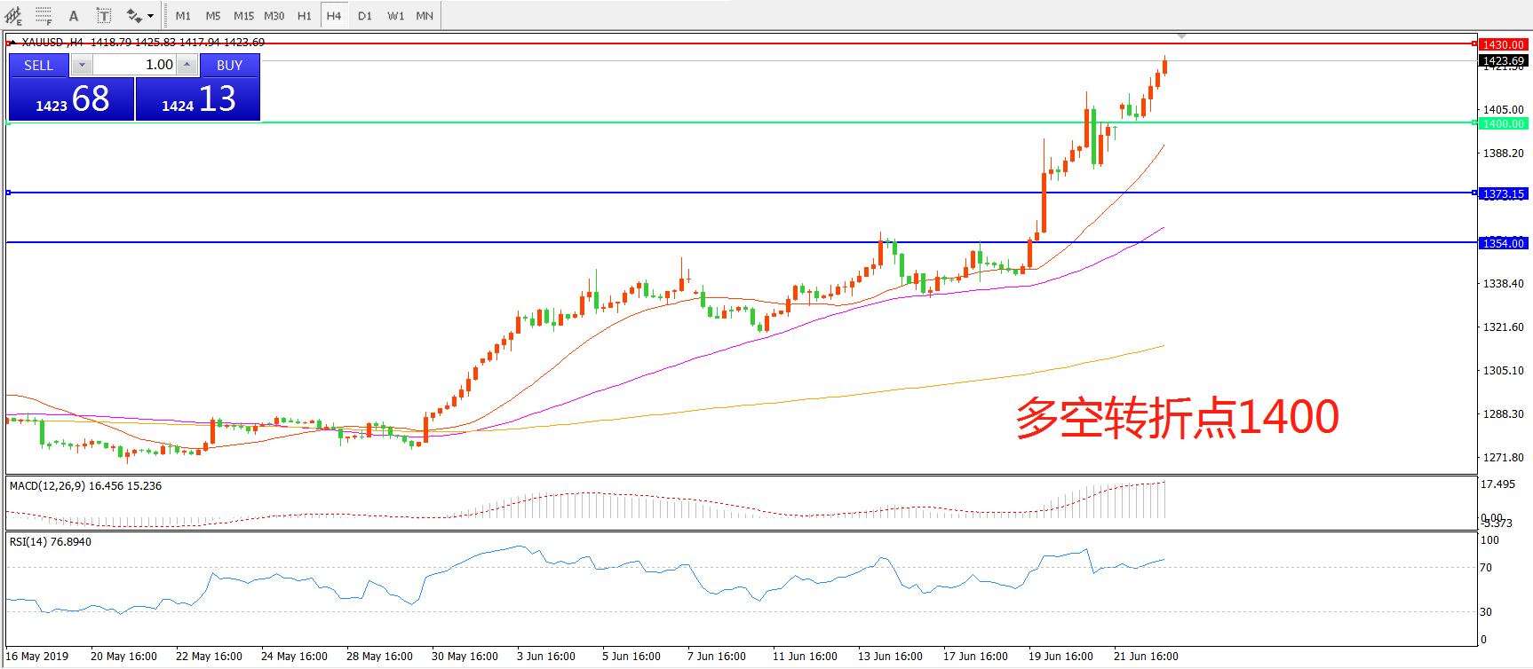多空转折点:1400.00