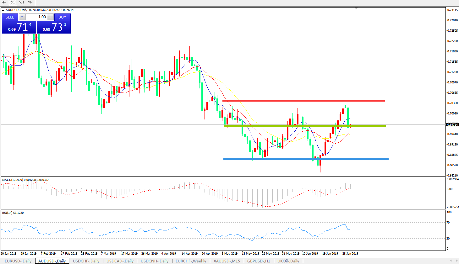 交易策略:0.6960上方看涨,目标0.70200.7100