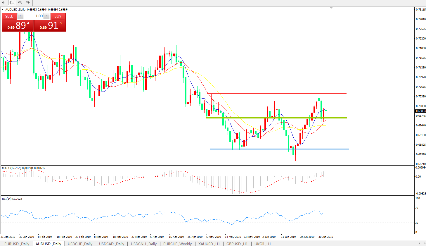 交易策略:0.6960上方看涨,目标0.7020、0.7100