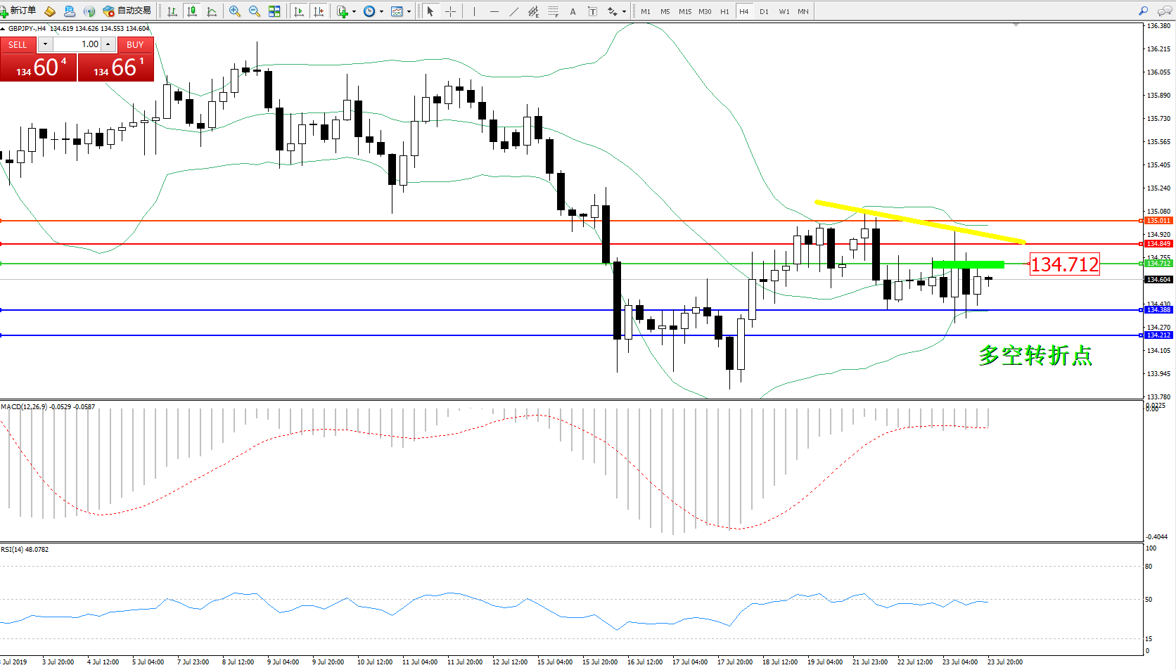 交易策略:134.712下方看跌,目标134.388134.212