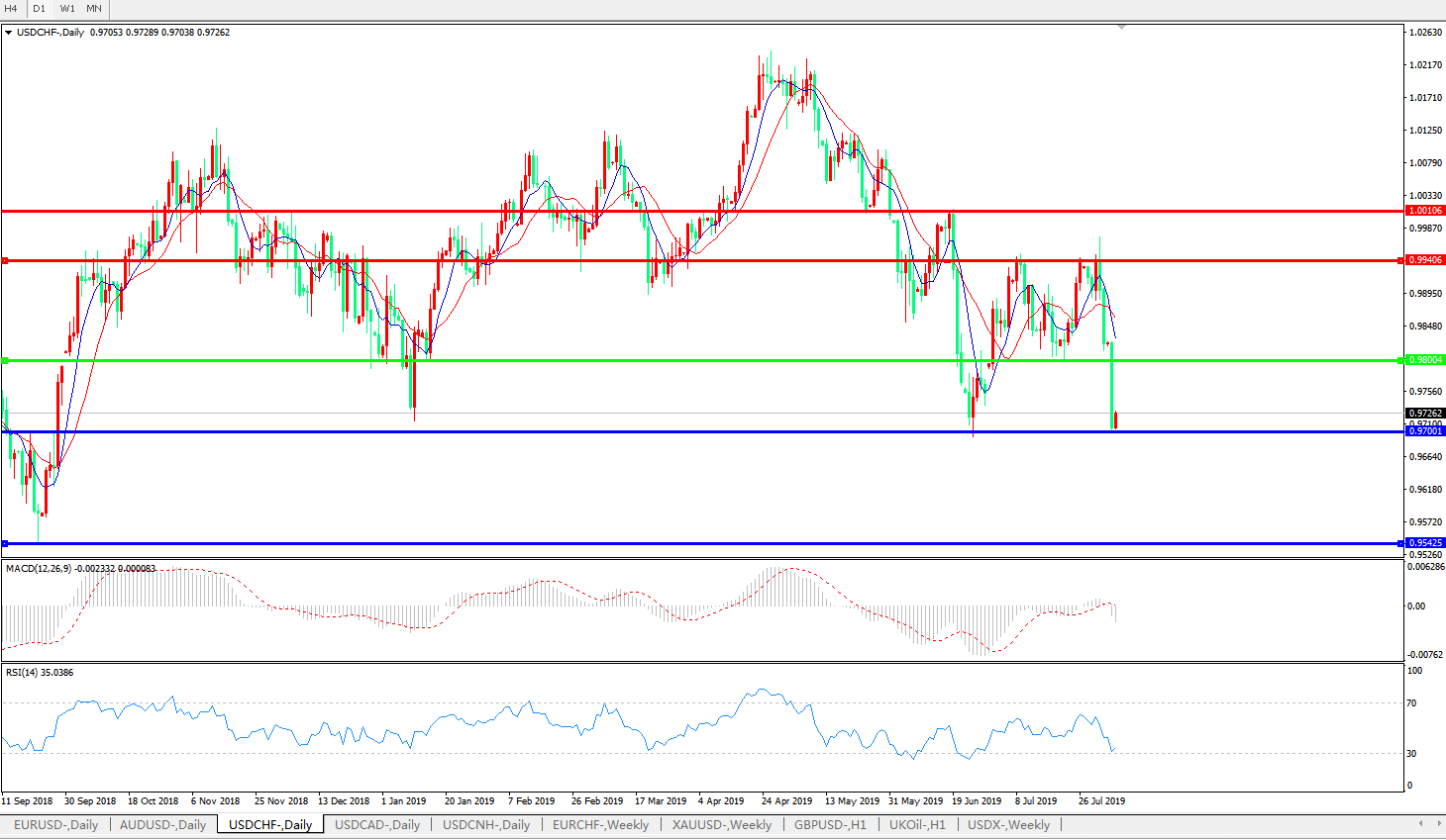 支撑位:0.9700、0.9542