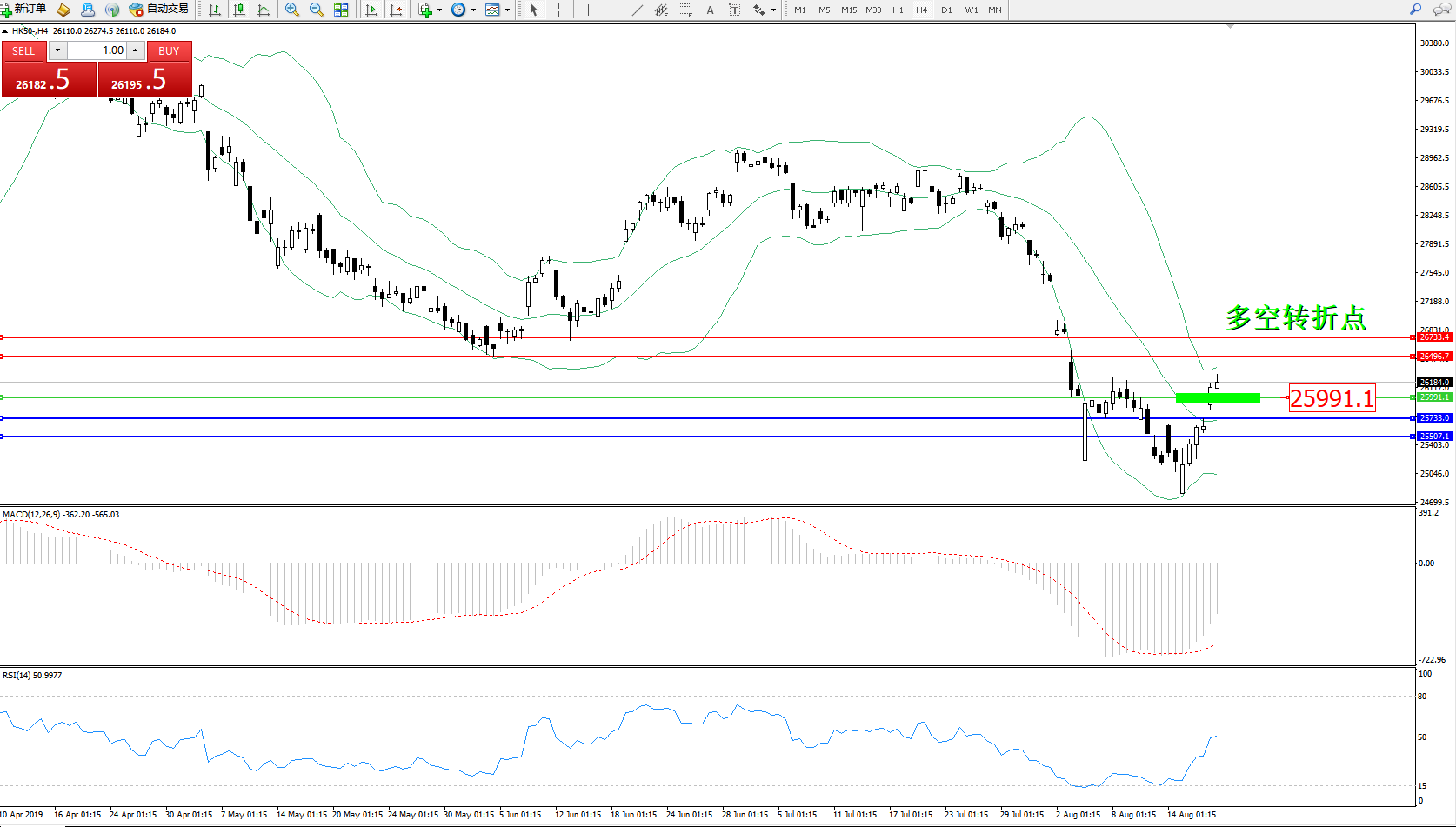 香港恒生指数8月19日(周一)收盘上涨557.62点,涨幅2.17%,报26291.84点;创两个月以来最大单日涨幅,收报26291.84点,日K线三连阳,三天反弹近千点。多家机构预测,港股从中长期来看经过深度调整后,估值低于历史长期均线,性价比优势也会进一步显现,一些基本面良好或者前期遭遇错杀的公司有望从困境中突围。当前A股和港股收益风险的性价比处于较高区间,为投资布局提供了很好时机。受美联储降息政策影响,A股和港股的整体估值水平有望得到提振。