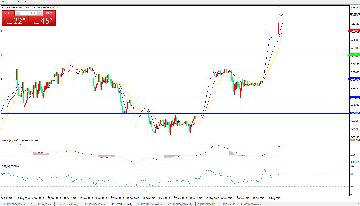交易策略: 在7.0000之上,看涨,目标价位为7.1000,然后为7.2000。
