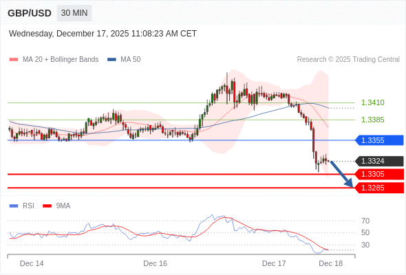 在 1.3385 之下,看跌,目标价位为 1.3305 ,然后为 1.3285 。