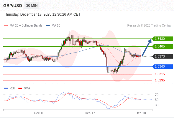在 1.3340 之上,看涨,目标价位为 1.3405 ,然后为 1.3430 。