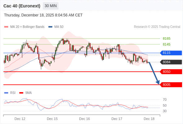 在 8115 之下,看跌,目标价位为 8050 ,然后为 8005 。