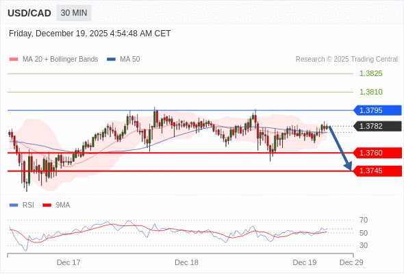 在 1.3795 之下,看跌,目标价位为 1.3760 ,然后为 1.3745 。