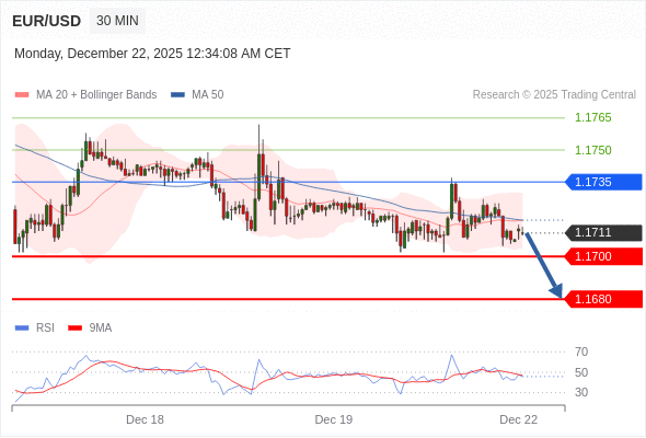 在 1.1735 之下,看跌,目标价位为 1.1700 ,然后为 1.1680 。