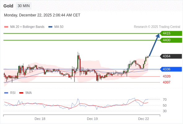 在 4336 之上,看涨,目标价位为 4400 ,然后为 4415 。