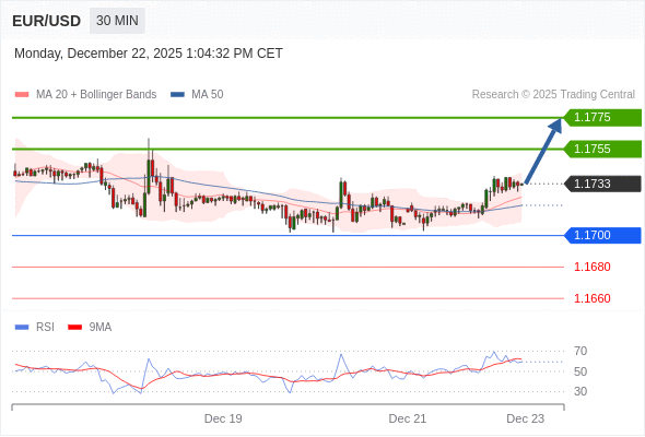 在 1.1700 之上,看涨,目标价位为 1.1755 ,然后为 1.1775 。