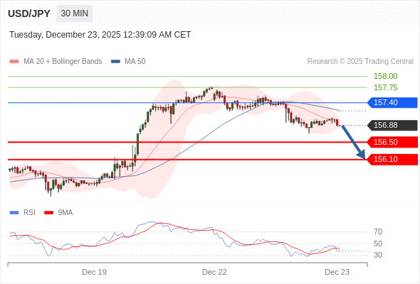 交易策略: 在 157.40 之下,看跌,目标价位为 156.50 ,然后为 156.10 。