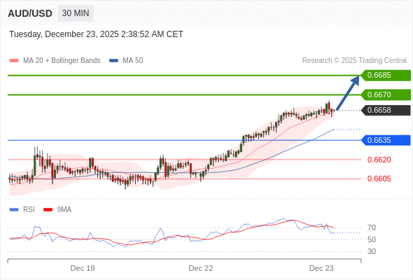 在 0.6635 之上,看涨,目标价位为 0.6670 ,然后为 0.6685 。