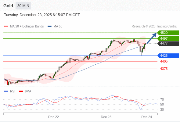在 4428 之上,看涨,目标价位为 4497 ,然后为 4520 。
