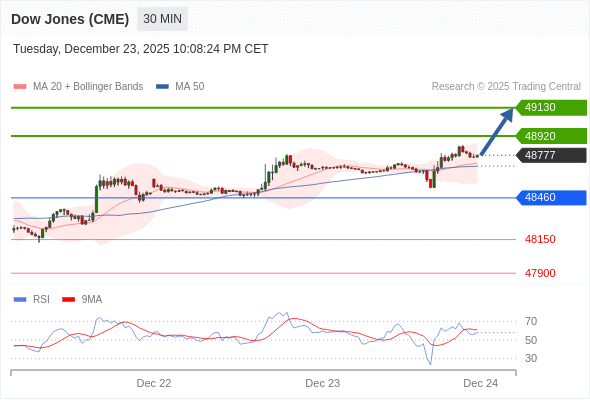 在 48460 之上,看涨,目标价位为 48920 ,然后为 49130 。