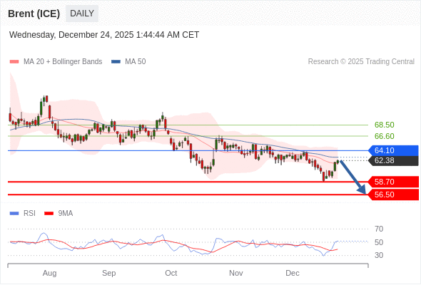 在 64.10 之下,看跌,目标价位为 58.70 ,然后为 56.50 。