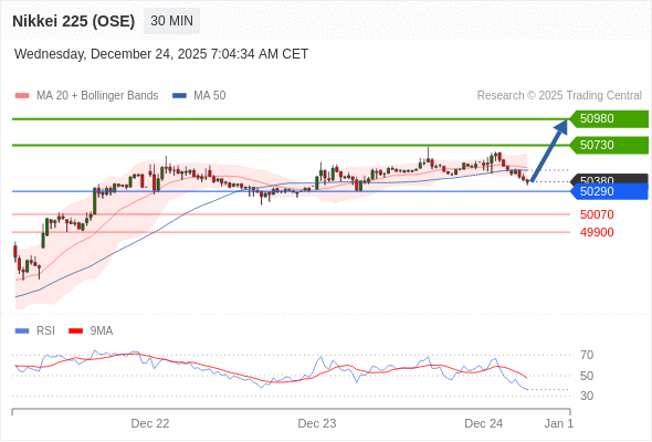 在 50290 之上,看涨,目标价位为 50730 ,然后为 50980 。
