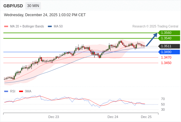 在 1.3490 之上,看涨,目标价位为 1.3540 ,然后为 1.3560 。