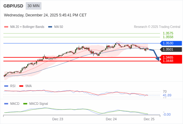 英镑/美元 当日内 : 看跌,在 1.3530 之下。