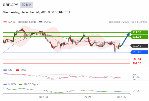 英镑/日元 当日内 : 有上涨的可能,目标价位定在 211.33 。