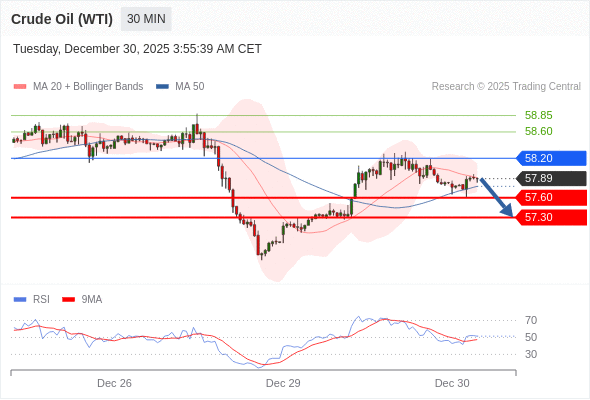 交易策略: 在 58.20 之下,看跌,目标价位为 57.60 ,然后为 57.30 。
