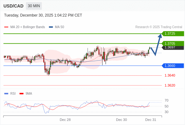 在 1.3660 之上,看涨,目标价位为 1.3705 ,然后为 1.3725 。