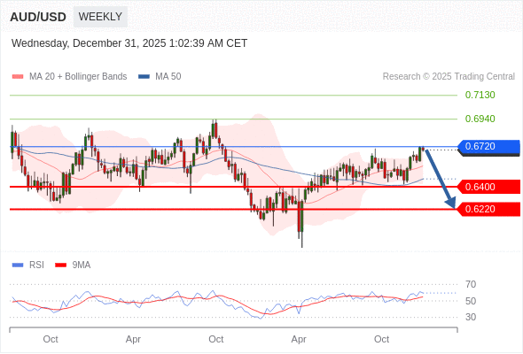 交易策略: 在 0.6720 之下,看跌,目标价位为 0.6400 ,然后为 0.6220 。