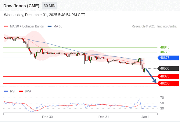 在 48675 之下,看跌,目标价位为 48375 ,然后为 48260 。