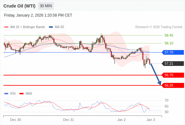 在 57.70 之下,看跌,目标价位为 56.70 ,然后为 56.25 。