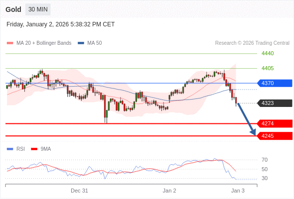 在 4370 之下,看跌,目标价位为 4274 ,然后为 4245 。
