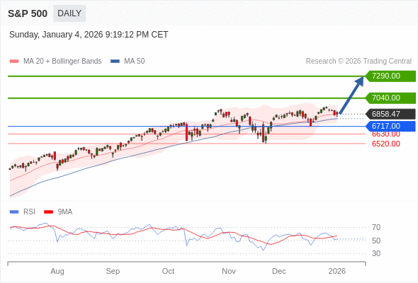 S&P 500 短线: 在6717.00之上,看涨。