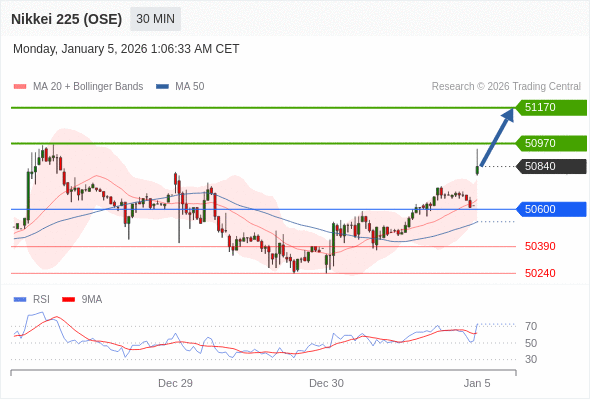 在 50600 之上,看涨,目标价位为 50970 ,然后为 51170 。