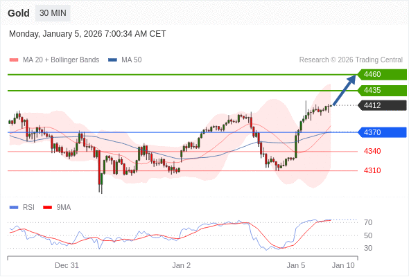在 4370 之上,看涨,目标价位为 4435 ,然后为 4460 。