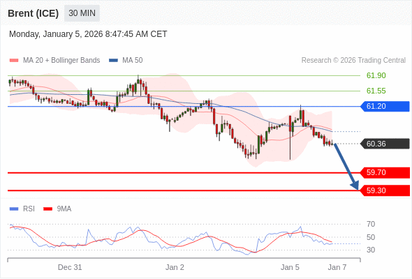在 61.20 之下,看跌,目标价位为 59.70 ,然后为 59.30 。