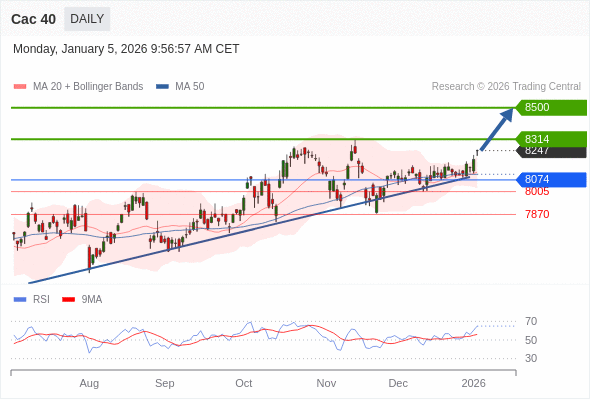 Cac 40 短线: 看涨。