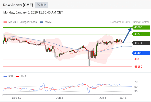 在 48425 之上,看涨,目标价位为 48770 ,然后为 48890 。