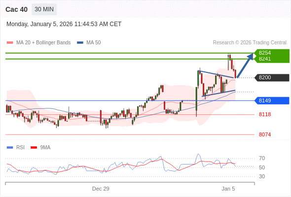 在 8149 之上,看涨,目标价位为 8241 ,然后为 8254 。