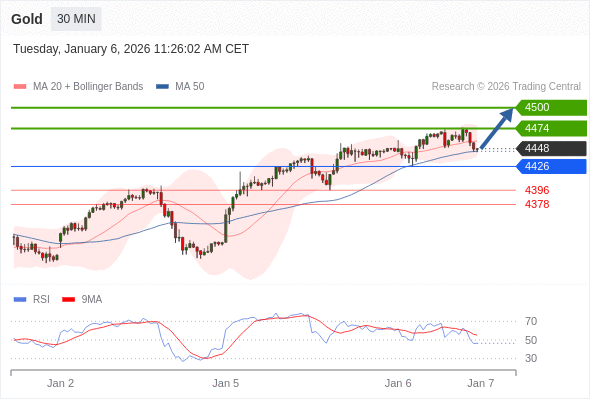 在 4426 之上,看涨,目标价位为 4474 ,然后为 4500 。