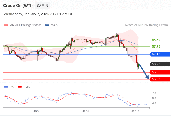 在 57.10 之下,看跌,目标价位为 55.60 ,然后为 55.00 。