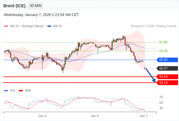 在 60.65 之下,看跌,目标价位为 59.50 ,然后为 59.10 。