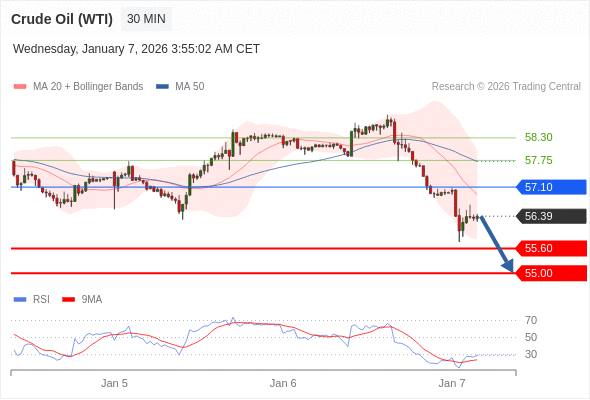 交易策略: 在 57.10 之下,看跌,目标价位为 55.60 ,然后为 55.00 。
