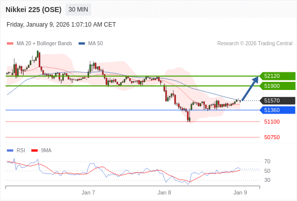 在 51360 之上,看涨,目标价位为 51900 ,然后为 52120 。