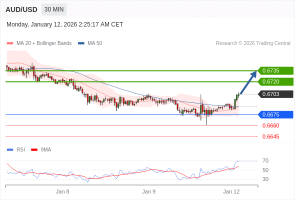 在 0.6675 之上,看涨,目标价位为 0.6720 ,然后为 0.6735 。
