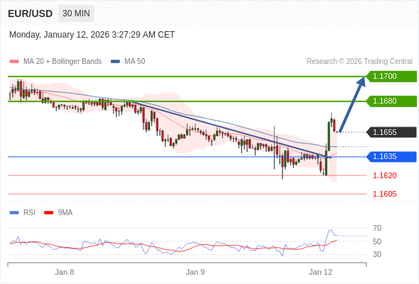 在 1.1635 之上,看涨,目标价位为 1.1680 ,然后为 1.1700 。