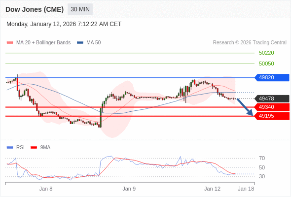 在 49820 之下,看跌,目标价位为 49340 ,然后为 49195 。