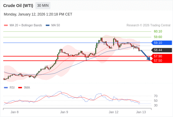 在 59.10 之下,看跌,目标价位为 57.90 ,然后为 57.50 。